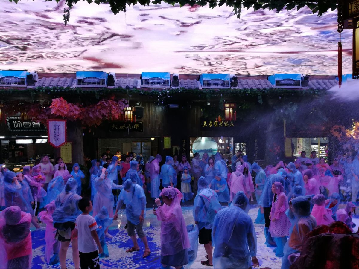 而南楚古城的天地巨幕演出场地安装了16台飘雪机和2台暴雪机。这些天降大学的飘雪场景及游龙戏凤的暴雪喷雪场景,给游人带来极致的冰爽刺激感受!形成了巨佳的口碑传播和社媒传播力,为项目持续关注度带来了强进动力。