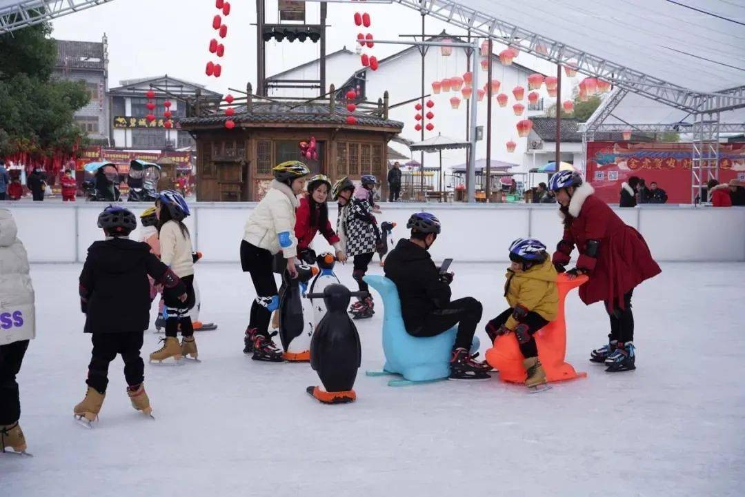 上清古镇首届滑冰戏冰节,也是春节期间遛娃好去处。