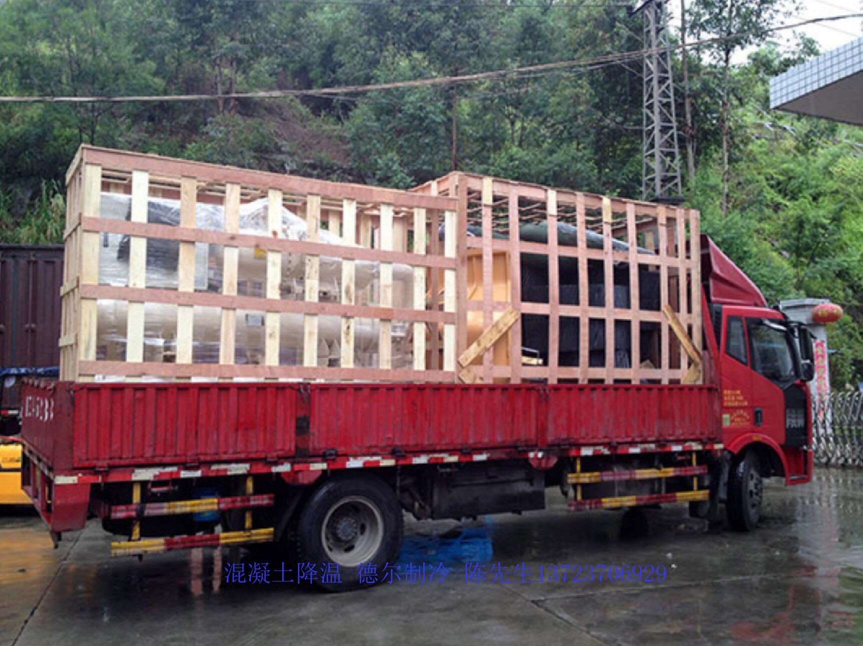 南海海洋地处中国南部海域,常年高温,混凝土工程易受高温影响,造成工程品质下降。公交二公局以专业化生产标准进行混凝土施工,通过采购我司混凝土专用冷水机,对混凝土进行有效的搅拌降温和冷却降温,使混凝土的搅拌与凝固过程处于安全可靠的生产控制工艺,确保优质工程。 冷水机成套设备装车中