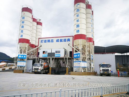 广西新柳南(柳州-南宁)高速公路第11、12标段、广西长长路桥公司采购我司生产的混凝土专用冷水机,为混凝土搅拌站配套冷水峰温,确保