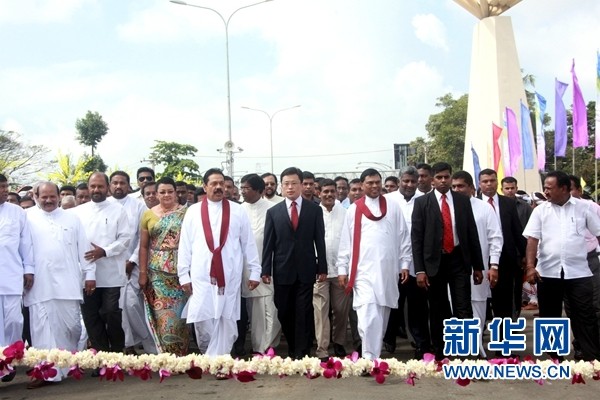 斯总统拉贾帕克萨为科伦坡国际机场高速路开通仪式揭幕(图片摘自新华网)
